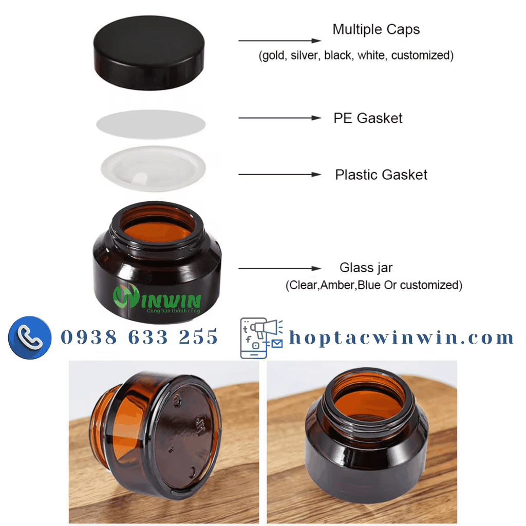 • 6Hỗ trợ in ấn miễn phí logo của khách hàng trên nắp và đáy hũ với MOQ thấp