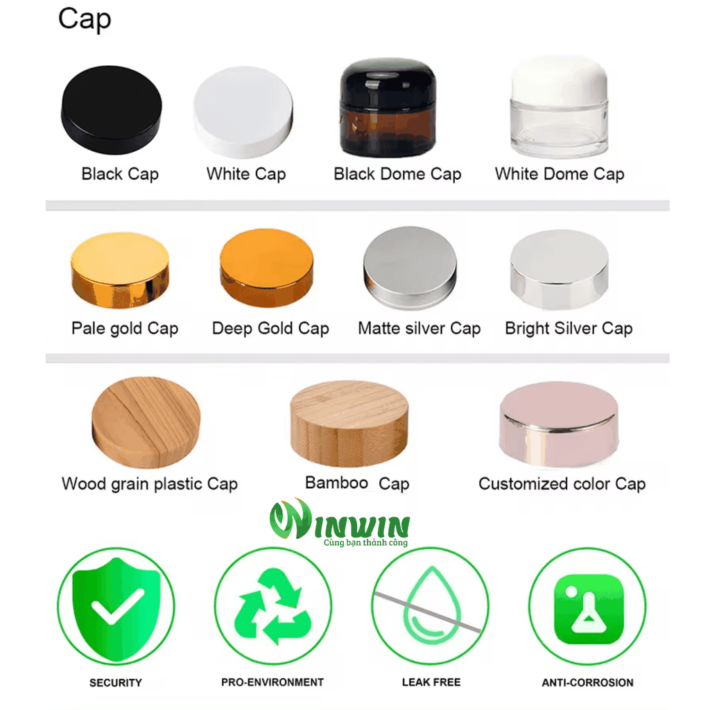 • 6Hỗ trợ in ấn miễn phí logo của khách hàng trên nắp và đáy hũ với MOQ thấp